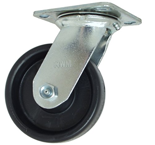 RWM Casters 45 Series Plate Caster, Swivel, Polyolefin Wheel, Celcon Bearing, 650 lbs Capacity, 5" Wheel Dia, 2" Wheel Width, 6-1/2" Mount Height, 4-1/2" Plate Length, 4" Plate Width