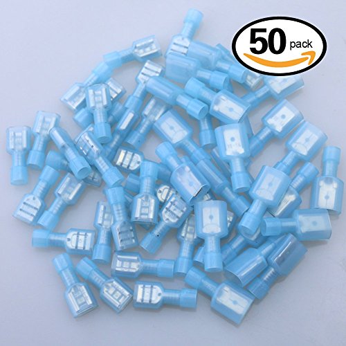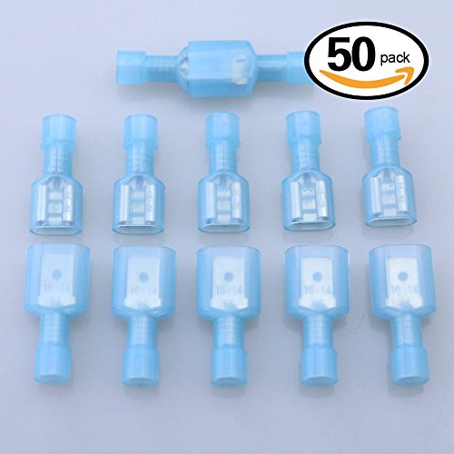 Glarks 50pcs 16-14 Gauge Fully Insulated Female Male Spade Nylon Quick Disconnect Electrical Insulated Crimp Terminals Connectors Assortment Kit