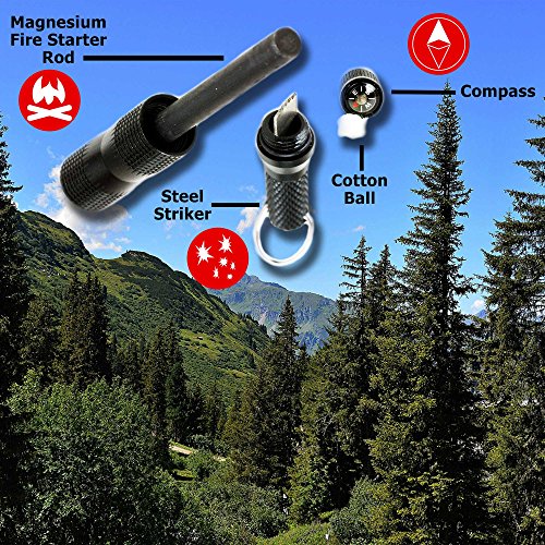 Survival Emergency Fire Starter Ferro Rod with Refill, Compass, Cotton Ball and Gift Box