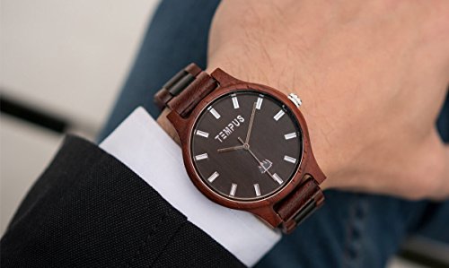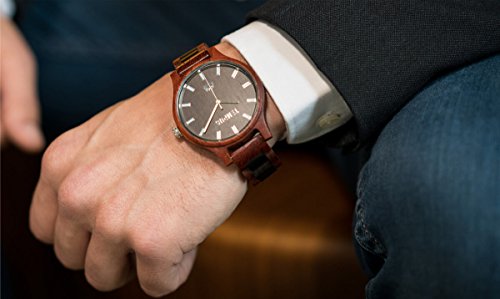 [UNIQUE DUAL TONE COLOR] - The beautiful Two Tone Rosewood and Black Sandalwood is the perfect mix of class and style. Perfect Dress Wooden Watch with a hint of rebel