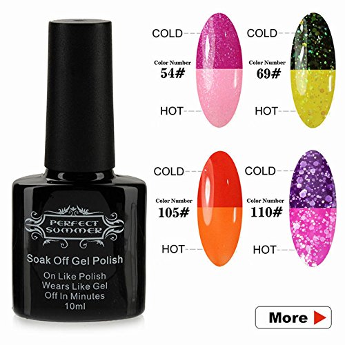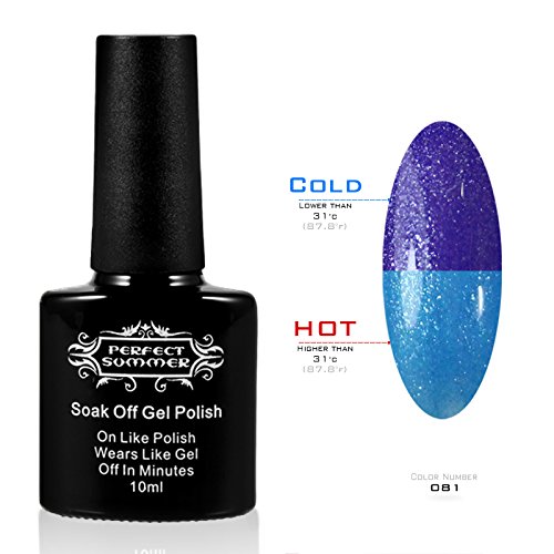 -. Binding : Misc. -. Brand : Perfect Summer -. Feature : The color changes with the temperature. The critical value of discoloration is 31 centigrade degree(87.8 Fahrenheit), you could see the obvious quick colors change while washing or bathing! Funny and Amazing!!! / LONG WEARING: 2-3 WEEKS Shiny High Gloss Wear without chipping or peeling. Also, no worry about Colors Peeling while washing clothes or tableware! / Attention: professional UV/LED lamp is required for gel polish! / Suitable for natural nails, UV gel nails, false nails, acrylic nails, nail tips, etc. / Perfect for salon beauty shop professional or at home personal use! -. Label : Shun Yan Cosmetics.,Ltd. -. Manufacturer : Shun Yan Cosmetics.,Ltd. -. PackageQuantity : 1 -. ProductGroup : Beauty -. ProductTypeName : BEAUTY -. Publisher : Shun Yan Cosmetics.,Ltd. -. Studio : Shun Yan Cosmetics.,Ltd. -. Title : Perfect Summer New Best Mood Temperature Colors Changing Chameleon Gel Nails Polish Gloss Shiny UV Led Soak Off Salon Nails Lacquers