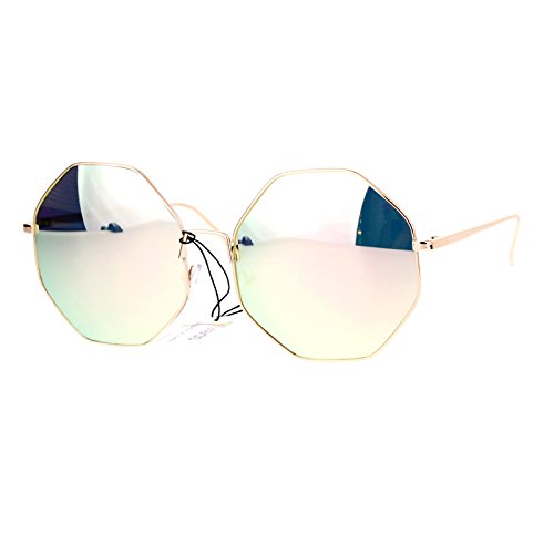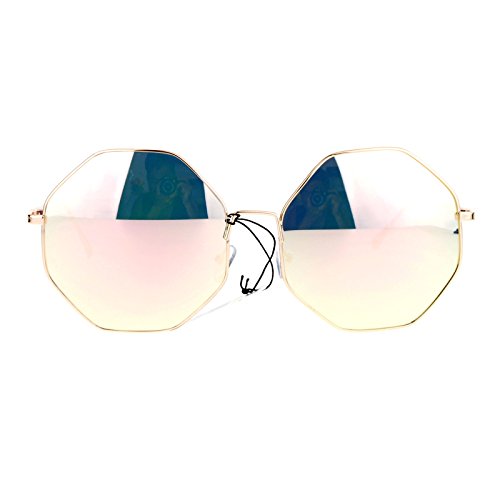 SA106 Pink mirrored Mirror Lens Octagon Metal Oversize Womens Sunglasses