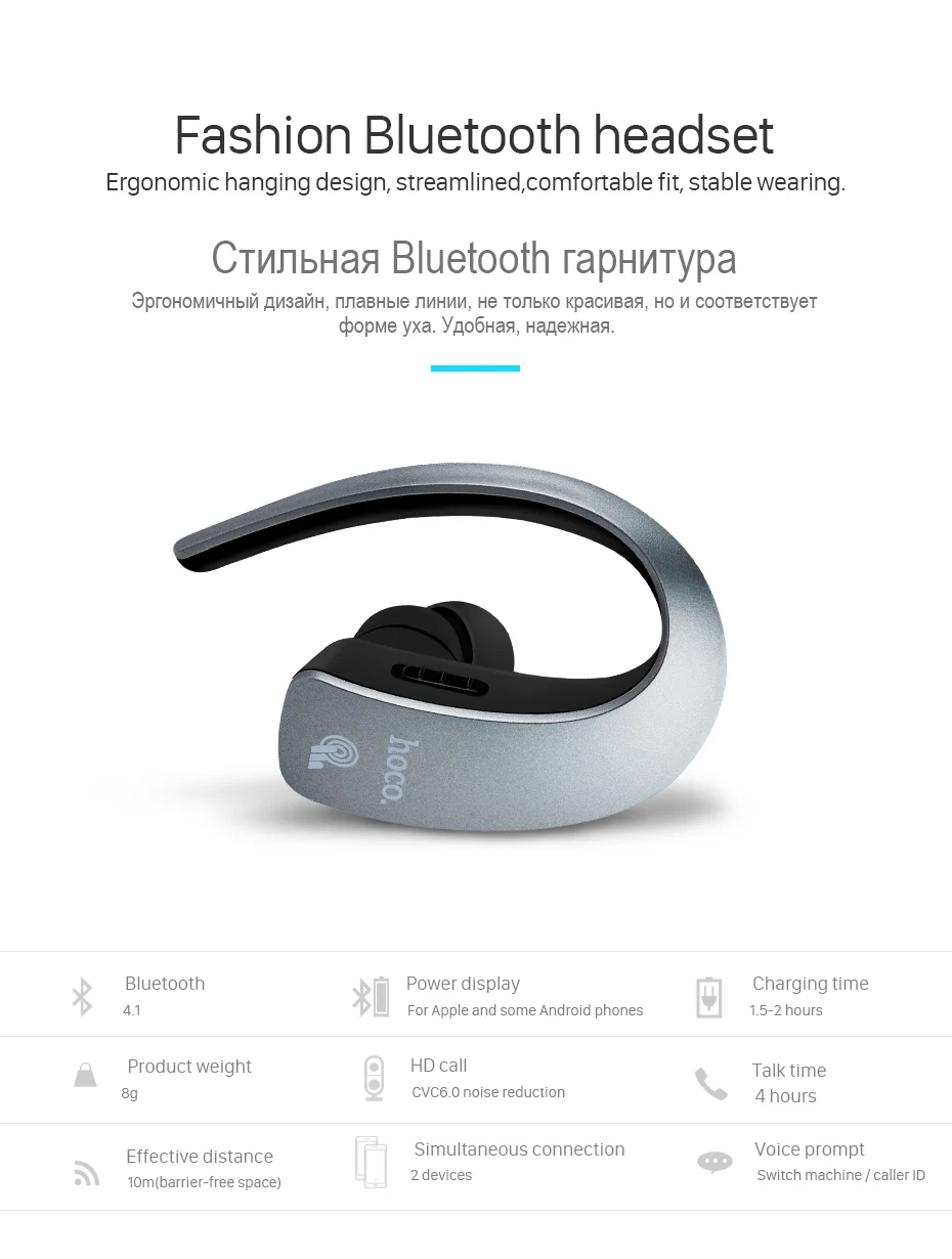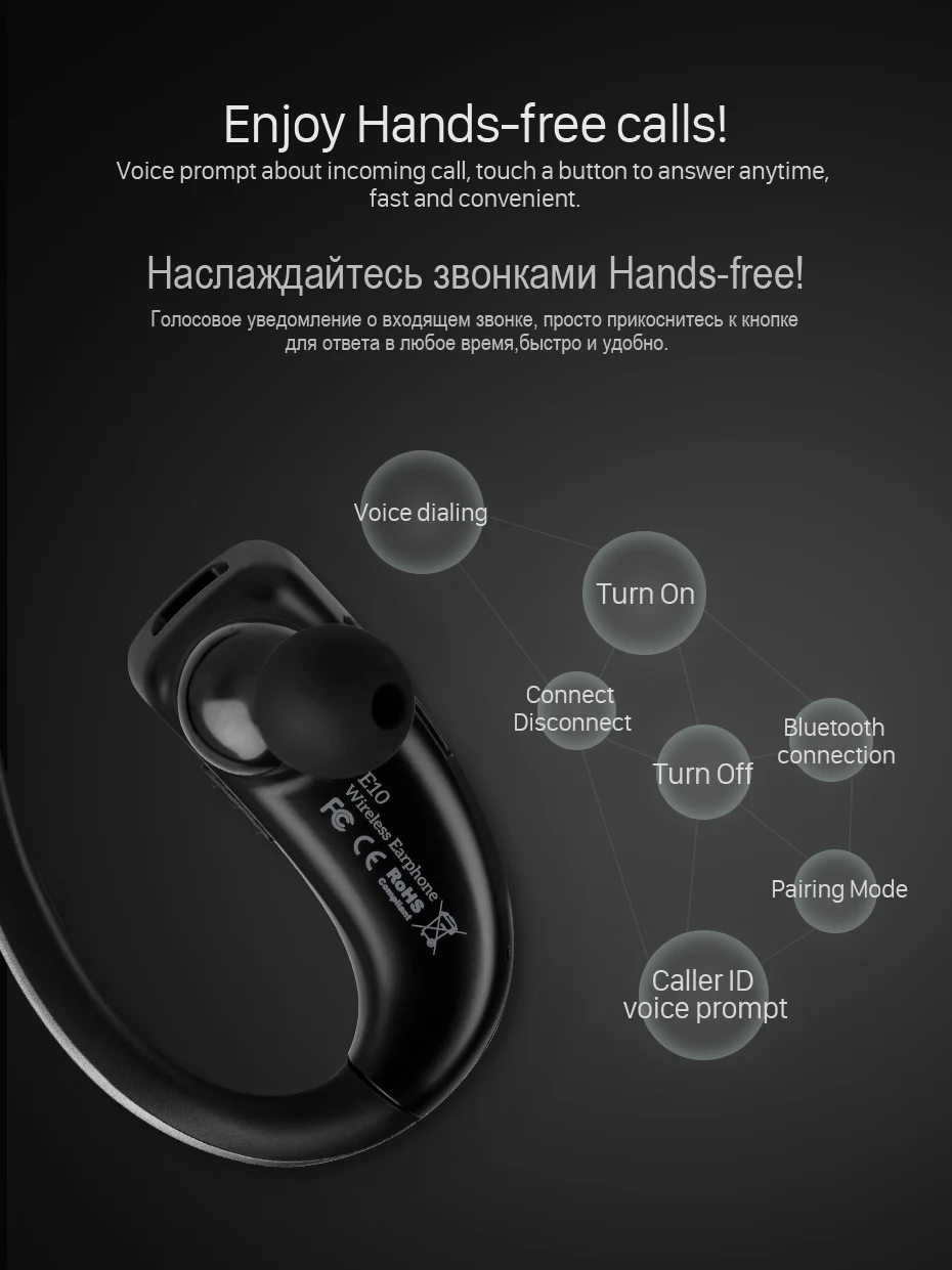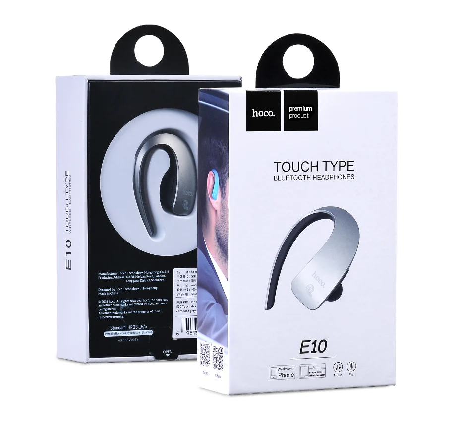 New HOCO Business Touch Control Earphone E10 Bluetooth One Pull Two Wireless Hands Free Headset HD Call for Universal Smartphone