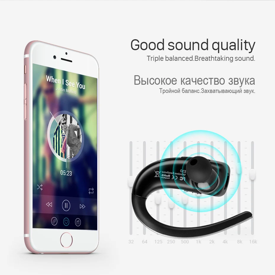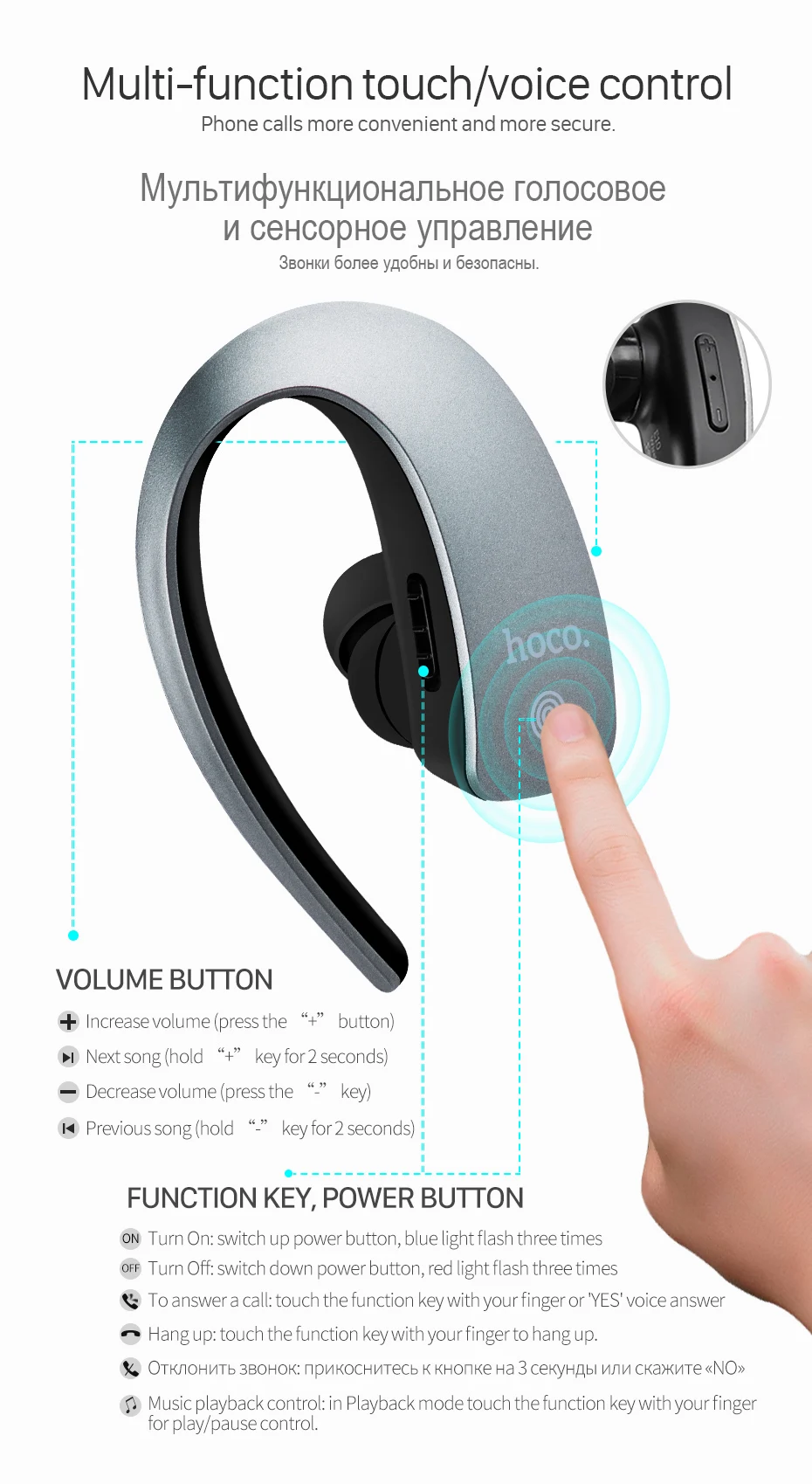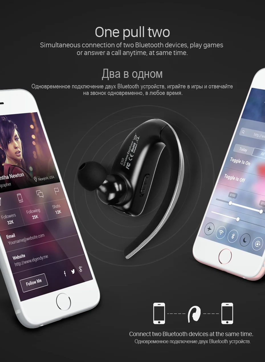 New HOCO Business Touch Control Earphone E10 Bluetooth One Pull Two Wireless Hands Free Headset HD Call for Universal Smartphone