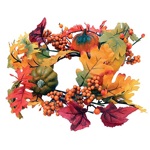 A Cheerful Giver Berry Maple Leaf Candle Ring with Pumpkin