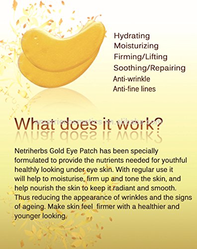 -. Feature : Prevent & Refine Aging, Remove Dark Circle, Reduce Eye Bags, Remove Fine Lines, Keep Skin Wet. / Powerful removes puffiness. Enriched with moisturizers,Deep moisturizing and wrinkle smoothing. / The golden infused collagen eye masks include 24 karat gold and aim to replenish moisture and collagen around the delicate eye area - as well as reducing dark circles or puffiness. / Stimulates collagen production for firmer more youthful facial contours and increases skin elasticity. / SAFE FOR SENSITIVE SKIN: Paraben & Alcohol Free - suitable for all skin types.