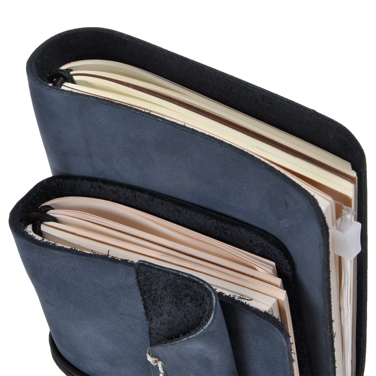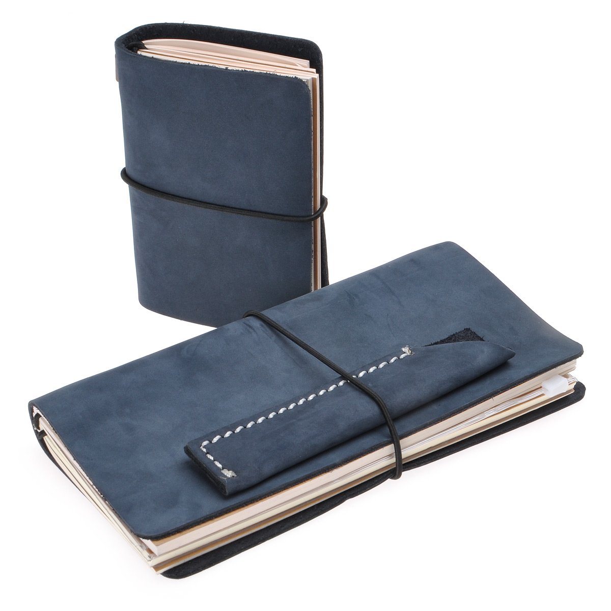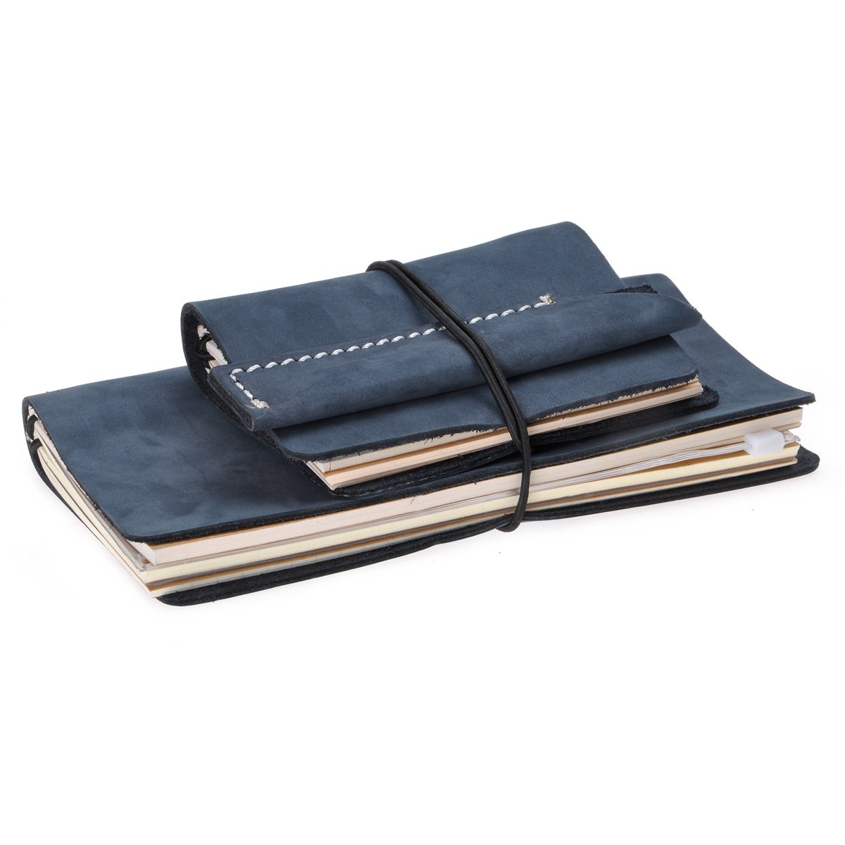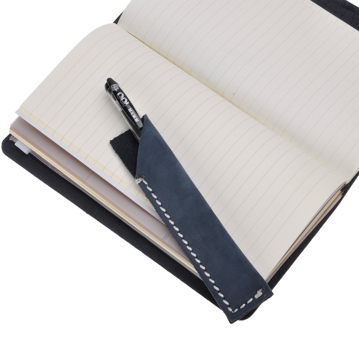 The leather cover fastening rubber has a knot, you can solve it and exchange another rubber thread of another color into the package.