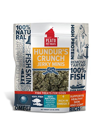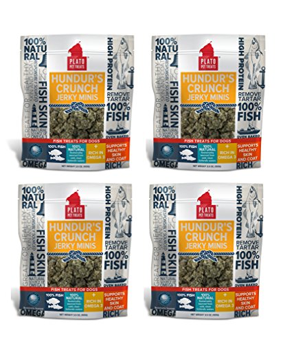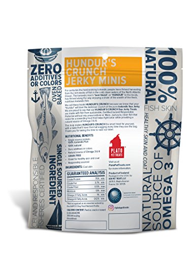 Hundur’s Crunch Jerky Minis are part of our Icelandic Fish line of treats. Jerky Minis have only ONE ingredient, Cod Skin. These treats are bite-sized and have NO added sugars, artificial preservatives, by-products, artificial colors, or protein-meals. These fishy treats are completely grain-free, soy, wheat, corn, fillers, and gluten free.These single-source novel protein treats are especially good for overweight dogs, small dogs, training, or dogs with skin issues, allergies, and food sensitivities due to naturally occurring Omega 3 and Omega 6 fatty acids.Best fish treats for dogs.