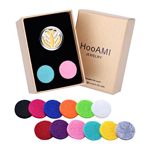 HooAMI Car Air Freshener Aromatherapy Essential Oil Diffuser Locket Angel Wing 316L Stainless Steel,12 Refill Pads