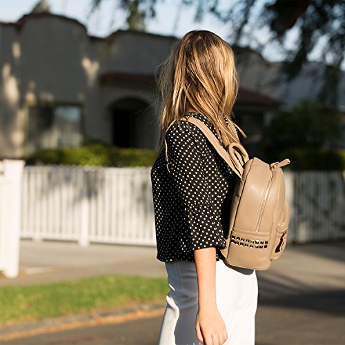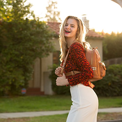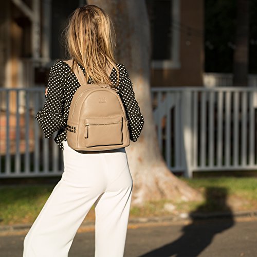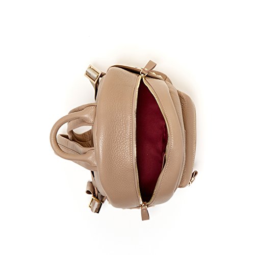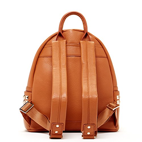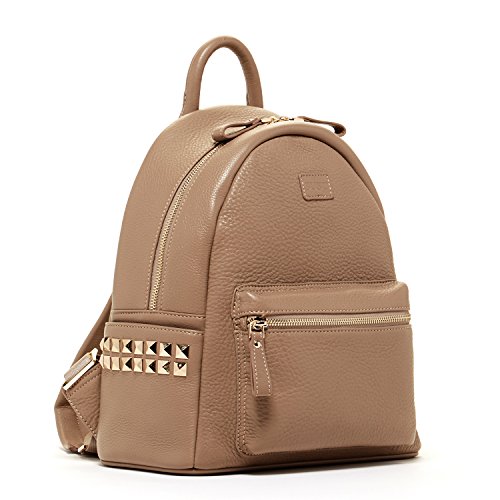 -. Brand : SUSU -. Department : womens -. Feature : *Width: 11.5″ *Height: 12″ *Depth: 6″ *Strap Drop: 16"-21″ / Genuine Leather / Cotton Lining / Top Zip Closure / This chic backpack crafted from genuine pebbled leather, features a top zip closure and is accented by gold-toned studs on its sides. Its roomy interior includes 2 cell phone slots, a zip pocket and a middle compartment designed to fit and protect an iPad. This must-have carryall also includes two adjustable backpacks straps. The Diana is available in black, brown and cement. -. ProductGroup : Shoes -. ProductTypeName : HANDBAG -. Title : SUSU The Diana Leather Backpack With Studs