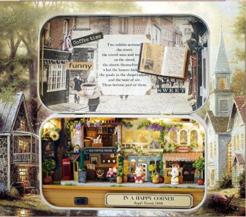 -. Title : Elloapic Mini Dollhouses Handicraft DIY Dollhouse Mini Box Theatre Art Gift For Kids Girlfriend Birthday Wedding Valentine's Day New Year with tool Knife, tweezers, ruler - In a Happy corner