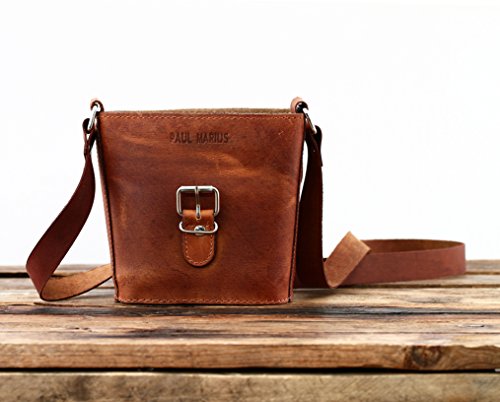 -. Title : PAUL MARIUS Kleine Eimer Tasche Ledertasche Vintage-Stil Größe S damentasche braun L'AUTHENTIQUE