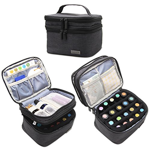 LUXJA Essential Oils Case - Holds 20 Bottles (5ml-30ml, Including Roller Bottles), Double-Layer Organizer for Essential Oil and Accessories, Black