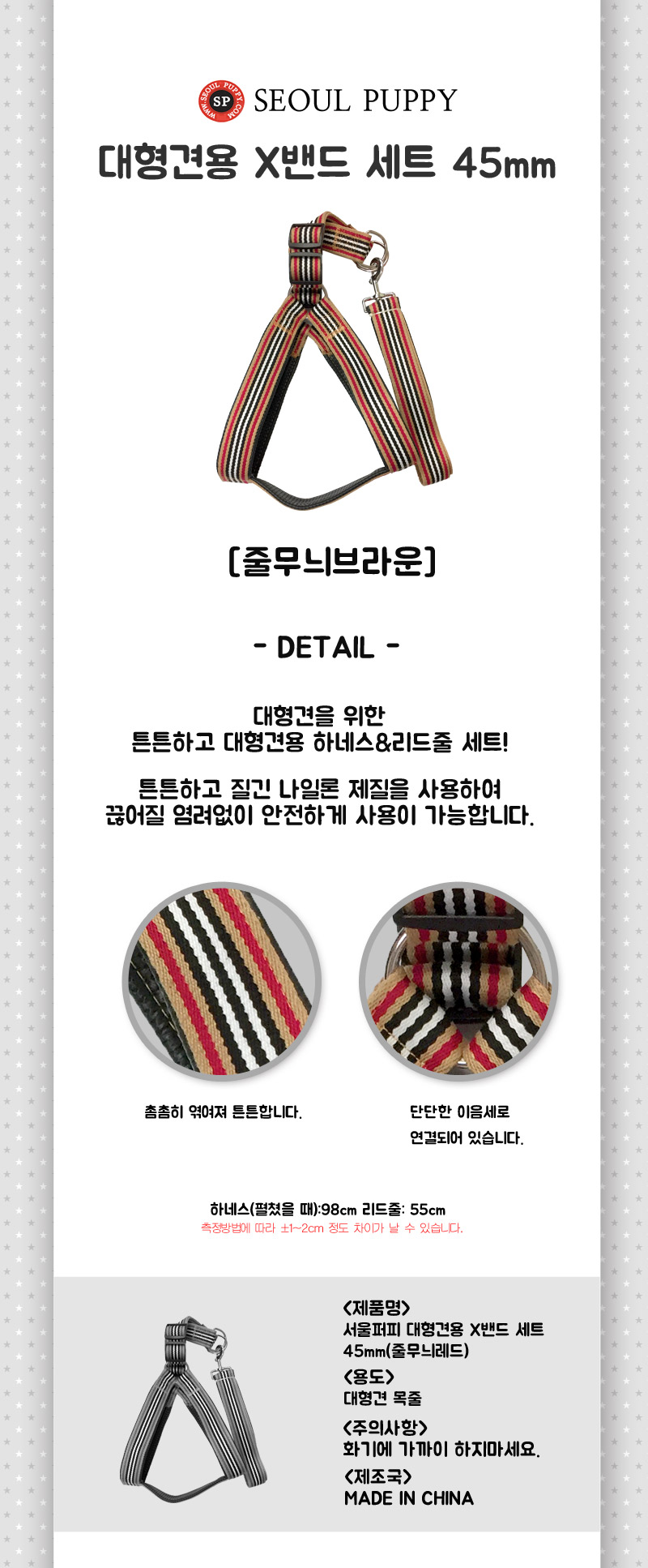 Walking Goods X Band Set 45mm Striped Brown Dog Chest Line Neckline Puppy Harness Large Dog