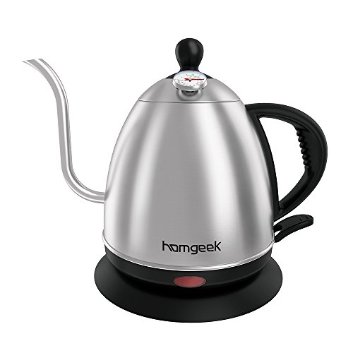Homgeek Electric Gooseneck Coffee Kettle 1 Liter Stainless Steel Cordless Drip Teapot with Thermometer for Pour Over Coffee & Tea
