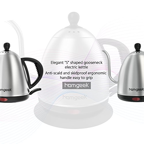 High Quality: This homgeek kettle is made of high quality stainless steel, the ergonomic handle is specially designed for a comfortable fit, It has fast water heating with automatic shut-off, all it takes is one touch of a button for boiling water.