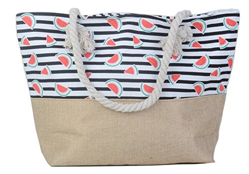 -. Feature : Demension:18"*12.5"*5.5" , enough to hold your snorkle mask, sun glasses,slippers. swimwear,snacks, drinks, sunblock ,towel and books. / Cotton String strap touchs your shoulder softly and gently,realax and massage your shoulders. / Unique and designed figure patterns P.R.Int, bright colors looking match the sunny summer and your pretty mood. / Lined with polyaster and zipper closures, keep your items away from sands/water/sunshine. Clean and secured. / Let's enjoy the beach times,pool times.picnic or any other family leisure times. Pack everything in one bag. Yeah!!