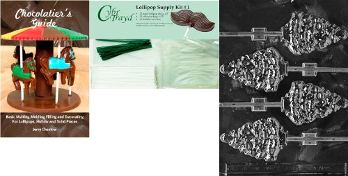 Cybrtrayd 45stK25GRBk-C038 Tree Lolly Chocolate Mold with Chocolatier's Bundle of 25 Lollipop Sticks, 25 Cello Bags, 25 Green Twist Ties and Chocolatier's Guide