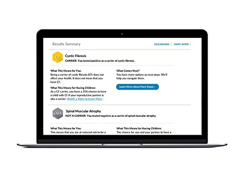ReleaseDate : 2016-08-06 Studio : Good Start Genetics Publisher : Good Start Genetics Binding : Health and Beauty Product Description Are you considering having a baby? With VeriYou, a highly accurate genetic test, you can quickly learn if you’re a carrier of two of the most common genetic disorders, cystic fibrosis (CF) and spinal muscular atrophy (SMA). A consultation with a board-certified genetic counselor is included to discuss your results. Whether you're testing because of personal interest or based on the advice of your healthcare provider, VeriYou tests for 591 CF variants in your DNA (compared to 28 CF variants by a leading consumer genetics company) to rapidly deliver answers. If both you and your partner are carriers for the same genetic disorder, there is a 25% chance your child will be affected by the disorder. Order your easy-to-use at-home “spit” kit and a licensed physician will review your order. Simply provide your saliva sample (no blood, no needles), and mail it back to us in the prepaid mailer. In about two weeks from our receipt of your sample, your confidential results will be delivered securely online. The results are straightforward and clear. More than 100,000 prospective parents have already been tested through our advanced DNA sequencing methods. Note: We cannot accept samples from NY currently but will soon! 0
