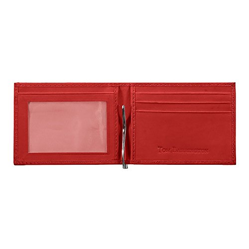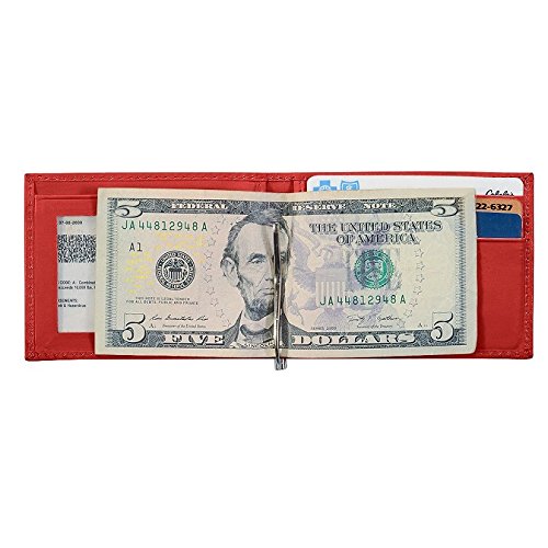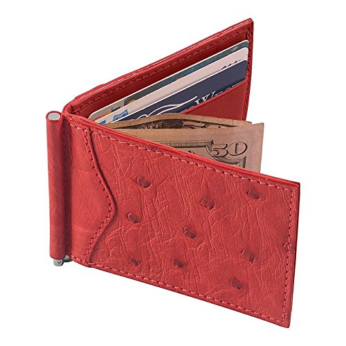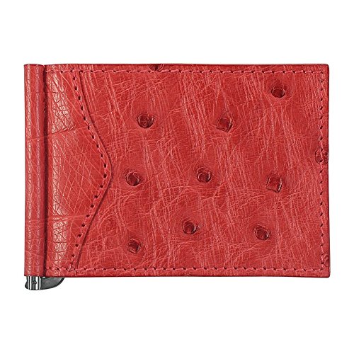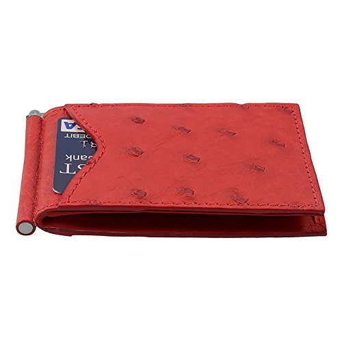 -. Title : Money Clip Wallet, Ostrich Leather, ID Holder, 3 CC Slots, Red/Red