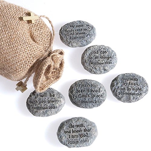 - Looking like real pebbles, our resin stones are each inscribed with a different Bible verse.