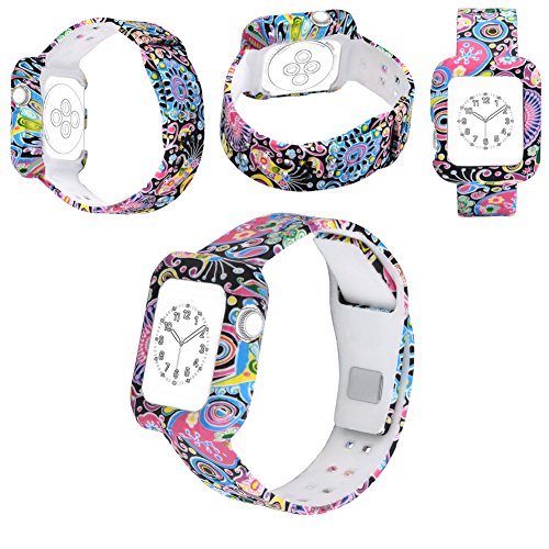 XiangMi Soft Protective Case with Strap Bands for Apple Watch/iWatch Series 2 Series 1 Sport Edition,Silicone Rubber Case Strap for iWatch All Models