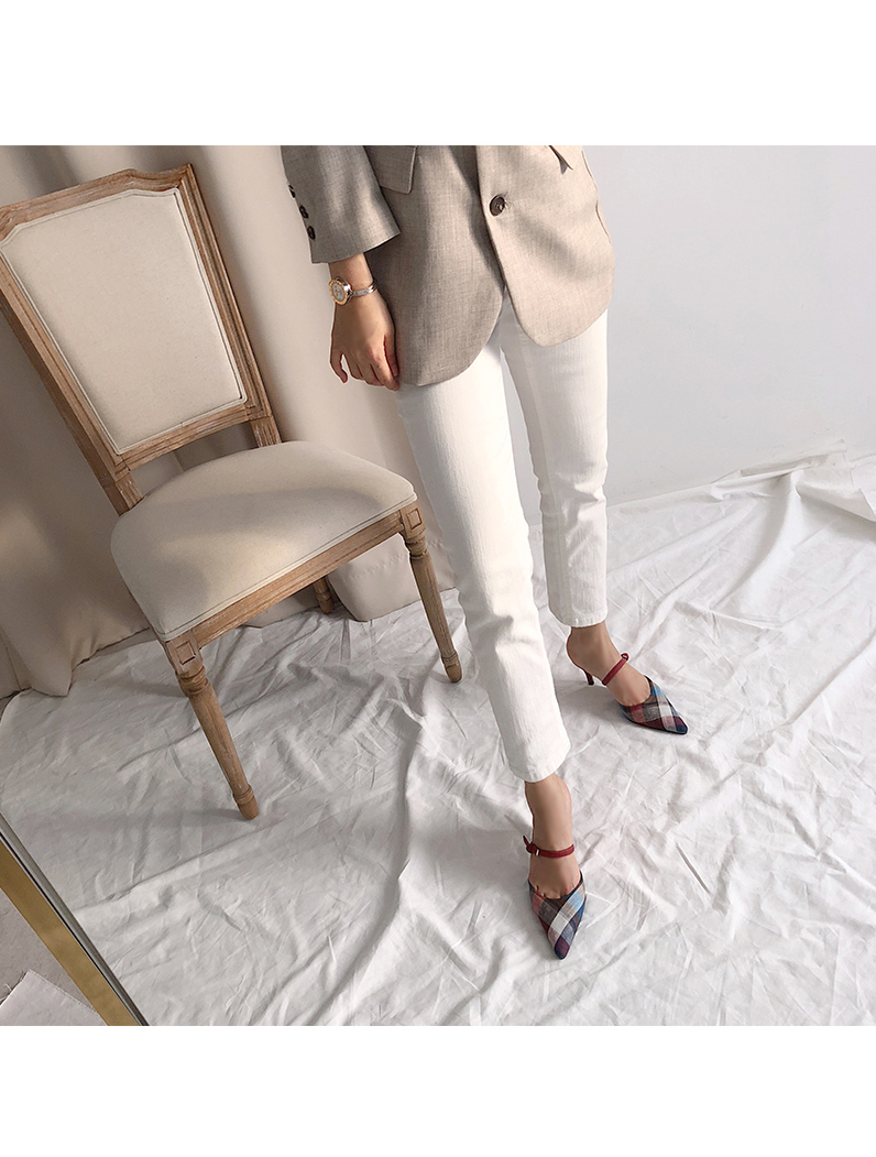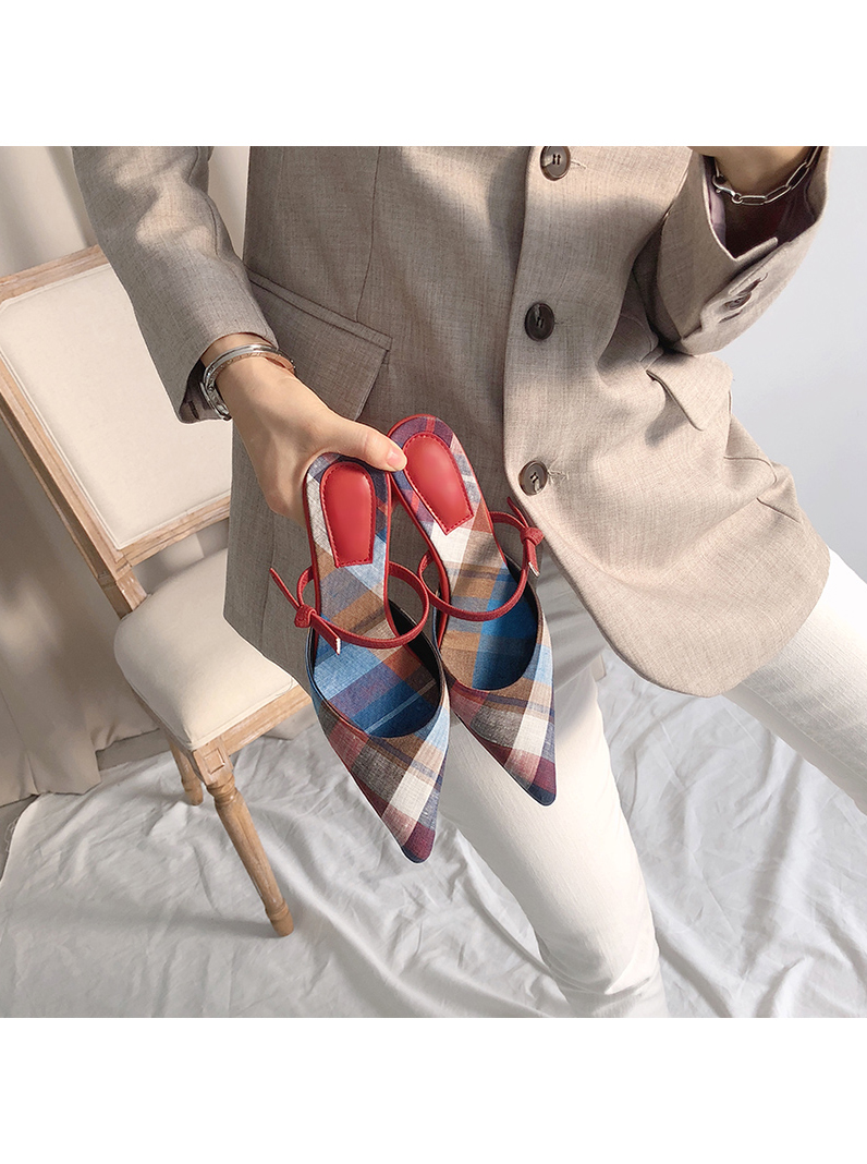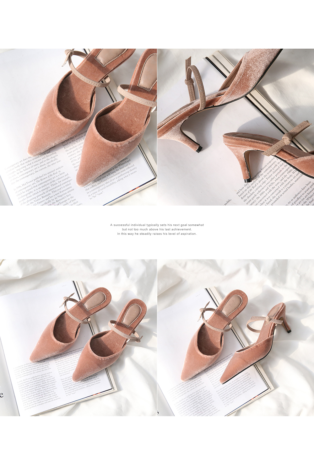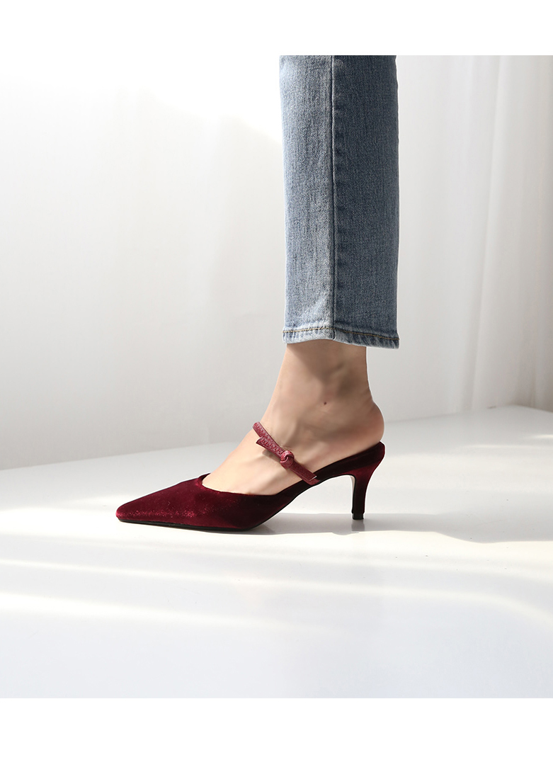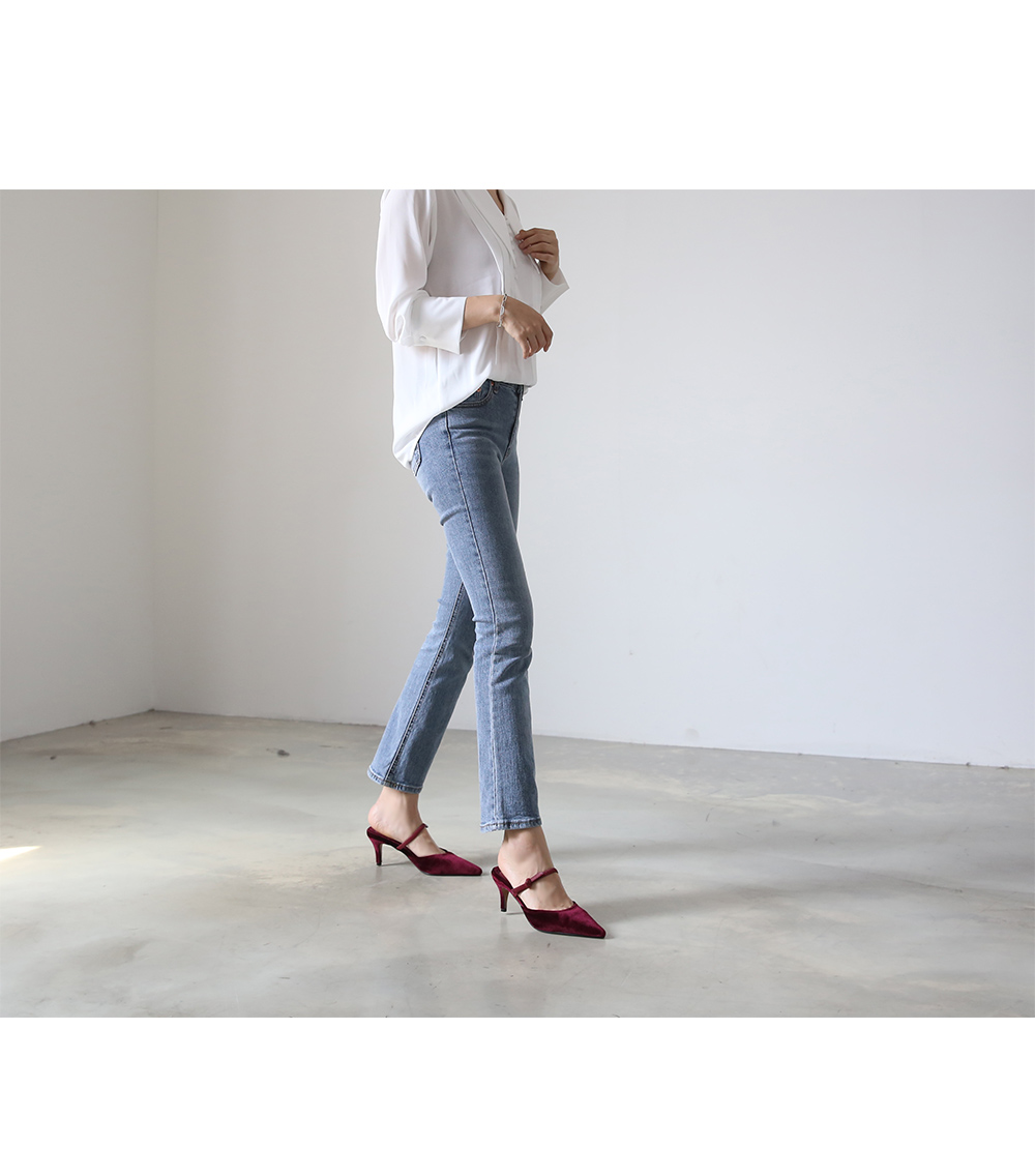 군더더기없는 스틸레토쉐입으로 빠진 쉐입이 도시적인 느낌을 선사해주며 체크패턴을 제외한 아더컬러는 벨벳으로 제작되었습니다.