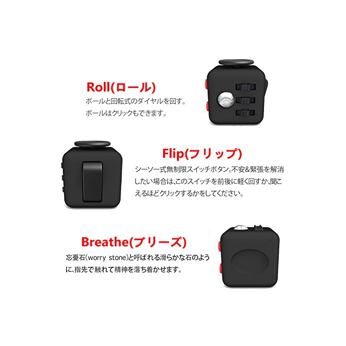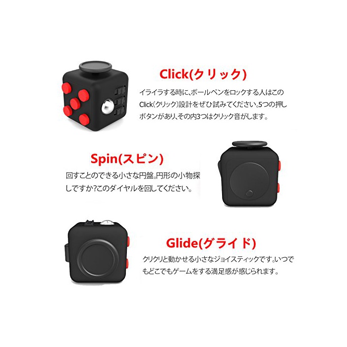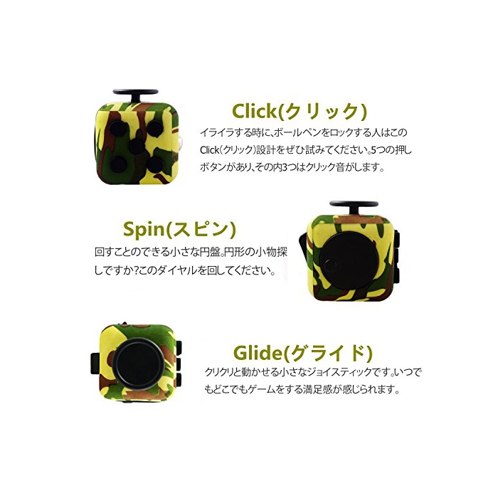 「다기능 휴대 장난감」스트레스 해소 큐브의 기능:「클릭(클릭)고, 미끄러짐(활주)고, 반전(반전)고, 호흡(바람)고, 권(권)고, 회전(회전)」