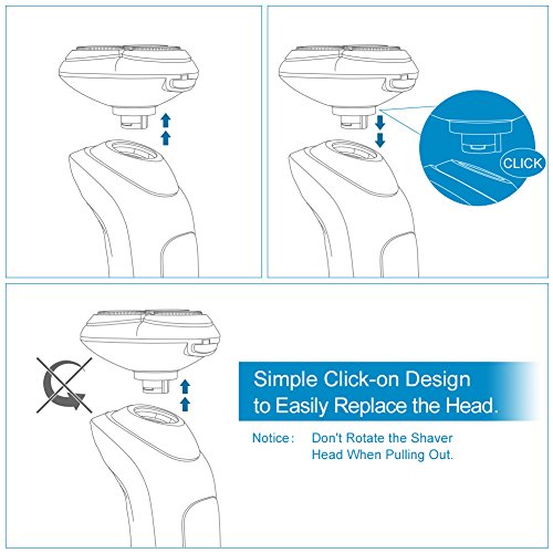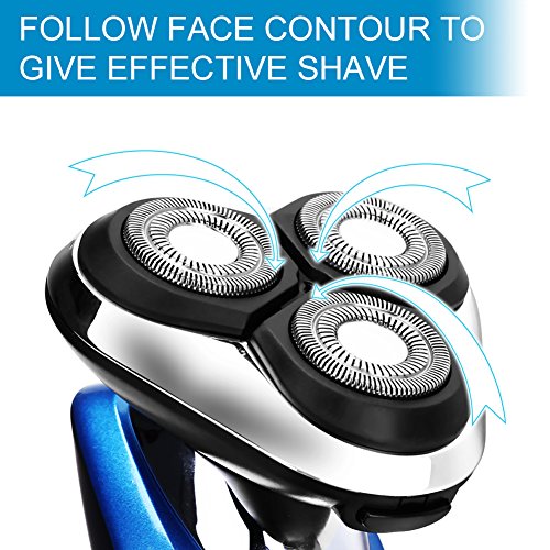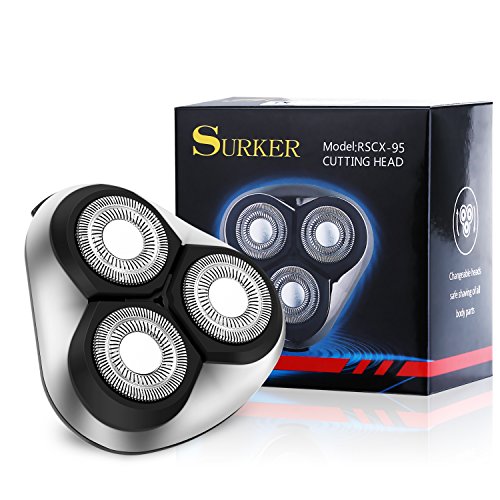 SURKER Electric Shaver Razor Head Rotary Shaver Wet and Dry 3 in 1 With Nose Trimmer and Sideburns Razor Waterproof Black Blue (Shaver Replacement Head)