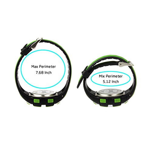-. Feature : Kids watches designed for Boys and Girls 5-12 years old. / 35mm dial of watch,high quality soft rubber band; Band length fits wrist 4.7-7.0 inches. / Multifunctional Digital Watch: Time/date, 12/24 hour format, EL night-light, Stopwatch, Daily alarm, Hourly chime. / Waterproof Wrist Watch: 98FT/30M Water Resistant, Perfect for all kind of casual, indoor activities and daily use. Handwash, shower, swimming, no problem! / NOTE: Please DO NOT press any buttons under water; *Wear it while taking a shower, TEMPERATURE of the water should be LOWER THAN 30 degree centigrade.