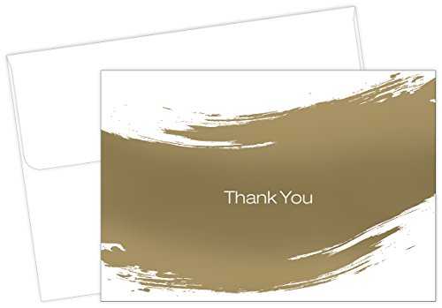 Gold Brush Thank You Note Cards - 50 Cards & Envelopes