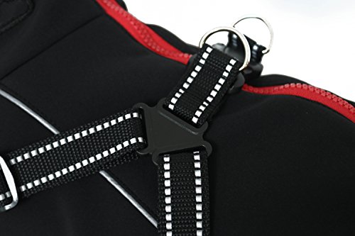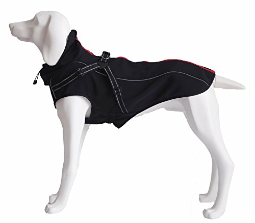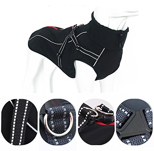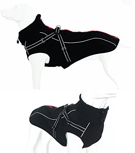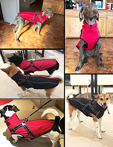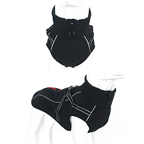 -. Feature : DESIGN: Waterproof, windproof, breathable three-layer soft-shell upper fabric protects dogs from the elements,Water resistant outer layer. / ELASTIC WAIST BAND: Not be tight or loose, just right, perfectly fit the chest or legs and will not constrain or tighten his body for freely breathing. high-necked design to keep dog warm,Ergonomic design to make dog suitable wearing and stylish, Easy to put on with fully adjustable straps. / KEEP YOUR DOG SAFE: Multi reflective strip on the waist and back, ensure the maximum visibility and stability for securely walking at night. / HIGH QUALITY: Combine stretchy enough polyester with soft fleece lining, make your sweet dog stay warm and cozy. Washable and reusable for repeated use. / WIDELY USE: Suitable for medium and large pet dogs with the back length of 30'', such as golden retriever, shepherd dog, great dane, Labrador Husky,and so on.