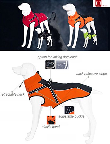 -. Title : U Only You Polyester-Fleece Lined Dog Coats - Technical Jacket of Waterproof, Windproof with Reflective Strip - Integrated Design - Dog Sport Vest - Warm coats - Sizes for Medium to Large Dogs (Black)