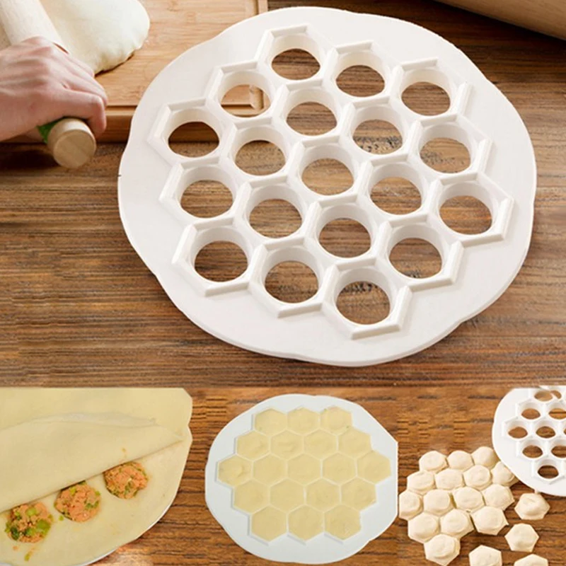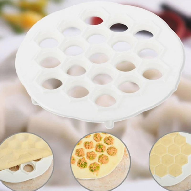 1Pcs Kitchen Pastry Tools DIY White Plastic Dumpling Mold Maker Dough Press Dumpling 19 Holes Dumplings Maker Mold Tools 21x 2cm