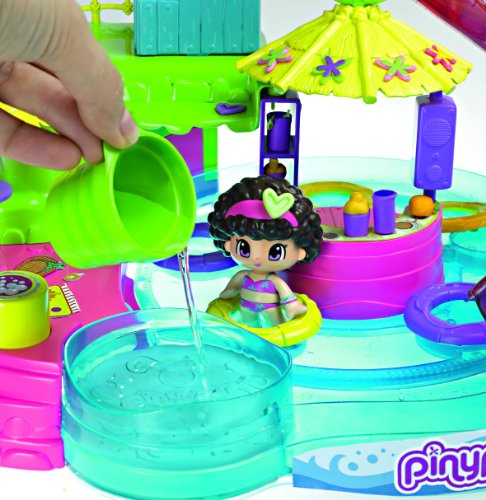 Ready for a ton of water fun? The Aquapark Adventure is where Pinypon Friends like to have fun on weekends and vacation! They swim, sit in the sun, slide down the waterslide, have a drink at the poolside bar, relax in the jacuzzi and more! So much fun!Feature