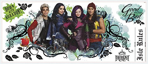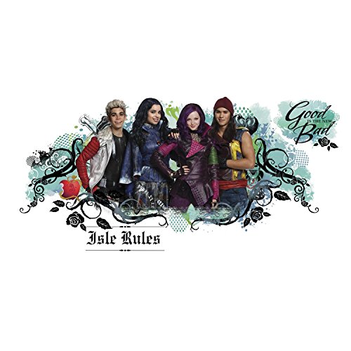 -. Binding : Kitchen -. Brand : RoomMates -. Color : Green -. EAN : 9631534599879 -. Feature : The teen children of Maleficent, The Evil Queen, Cruella De Vil, and Jafar are faced with a choice between good and evil. / Decals range in size from: 4"wide x 2"high to 35.5"wide x 16.4"high / Dimensions: 1 sheet 18" x 40" / Number of Wall Decals: 6. / Color: Green. -. Label : RoomMates -. Manufacturer : RoomMates -. Model : 1346-RMK2854GM -. MPN : RMK2854GM -. PartNumber : RMK2854GM -. ProductGroup : Home -. ProductTypeName : HOME -. Publisher : RoomMates -. Studio : RoomMates -. Title : RoomMates RMK2854GM Descendants Isle of the Lost Peel & Stick Wall Graphic, 6 Count