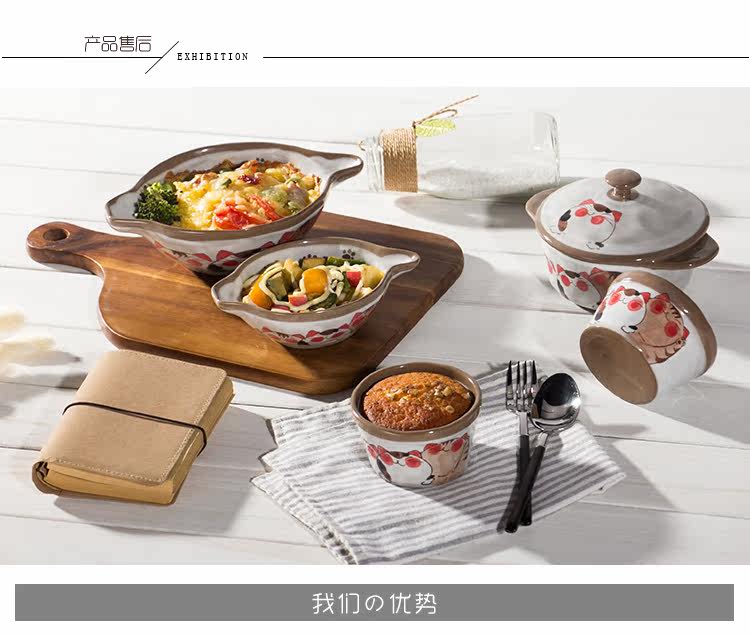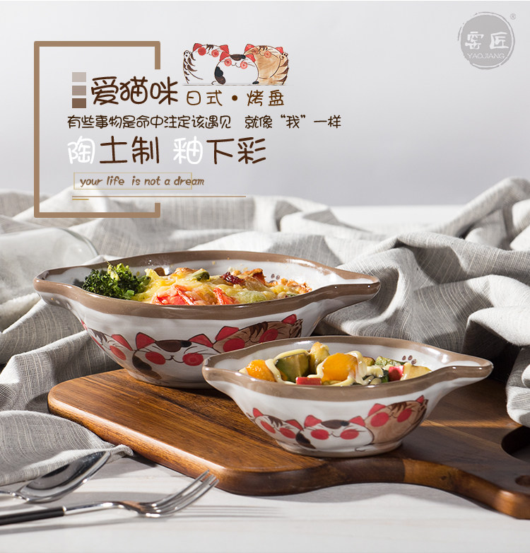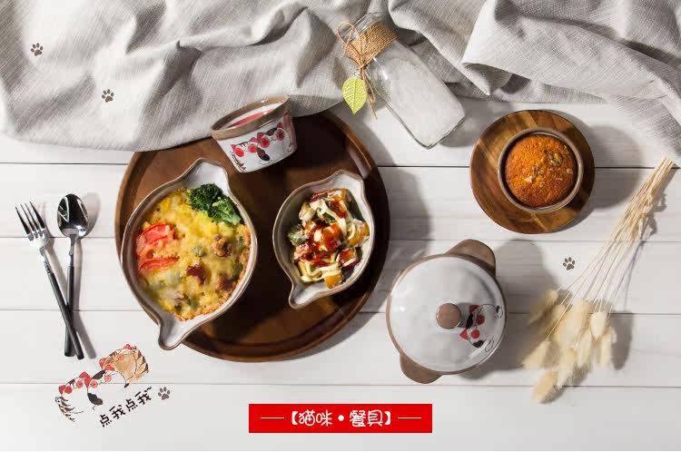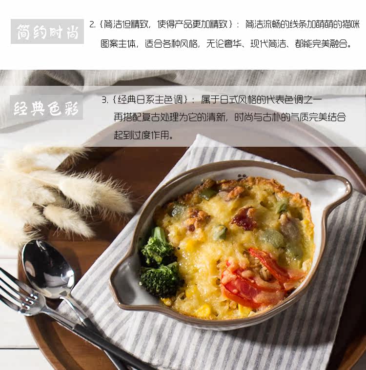 猫咪焗饭碗沙拉盘创意日式餐具烤箱烘焙高温陶瓷双耳芝士烤碗