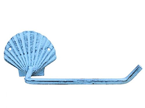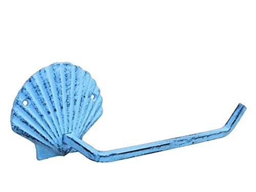 Hampton Nautical K-9211-solid-dark-blue Rustic Dark Blue Cast Iron Shell Toilet Paper Holder 10" - Beach Bathroom Decoration - Beach Home Decorating