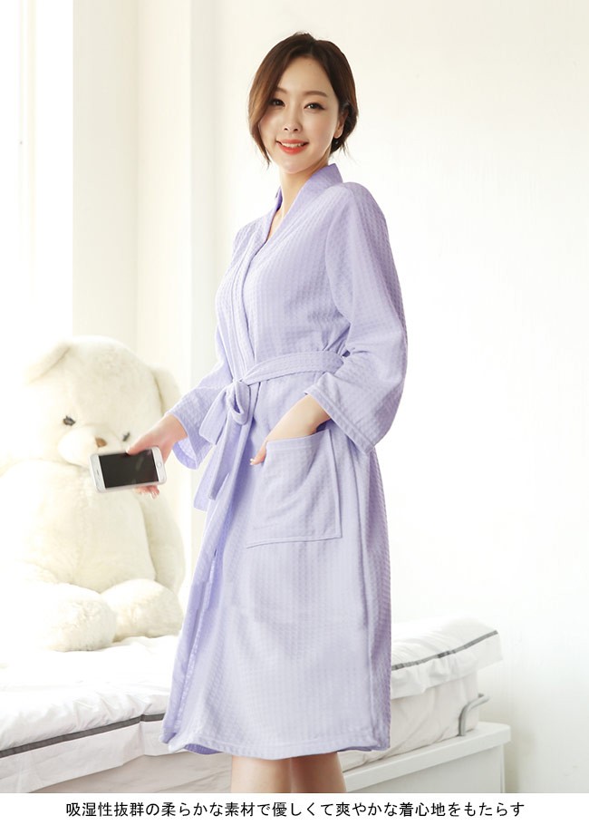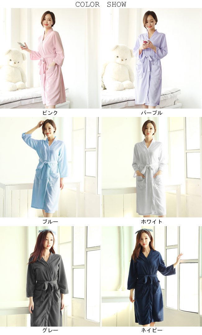 バスローブ レディース ガウン 長袖 膝丈 部屋着 女性用 ルームウェア 春秋物 夏物 パジャマ ナイトウェアレディース用のバスローブが登場春秋向けの程良い厚みの生地を採用吸湿性抜群の柔らかな素材で優しくて爽やかな着心地をもたらすベルト付きの仕様で締め付け感を気軽にアレンジできる両サイドに大きめのポケットが付いてるのも嬉しいポイント落ち着いた色から甘めの色までの6色展開が用意され、お好み次第で選べるカラー:ピンク パープル ブルー ホワイト グレー ネイビー素材 ポリエステルサイズ(cm) M LM 着丈94 バスト98 肩幅40 参考身長150-165cm 参考体重45-70kgL 着丈104 バスト114 肩幅45 参考身長165-180cm 参考体重70-90kgご注意:※サイズは平置きサイズです。素人採寸ですので、若干の誤差がございます、ご了承ください。