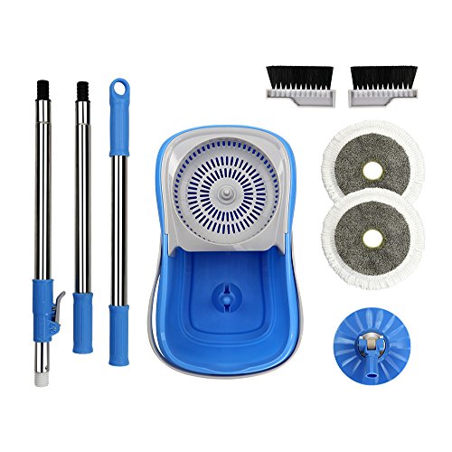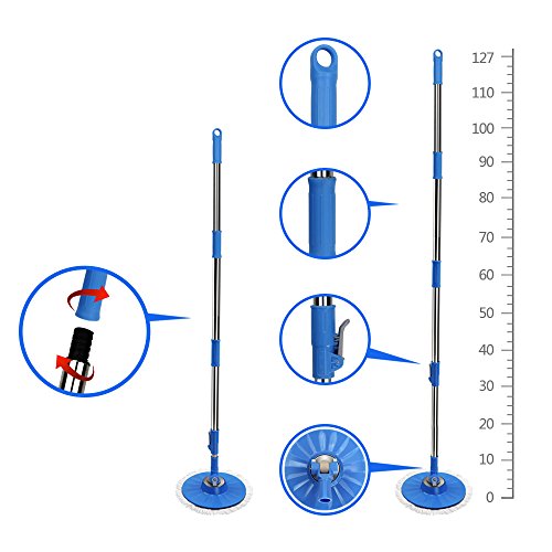 Stainless steel mop handle is adjustable up to 49.6 inches , no separate extension needed. Improved Sturdy Construction of Stainless Steel Mop Handle. Handle pivots and rotates 360° to clean hard to reach areas.