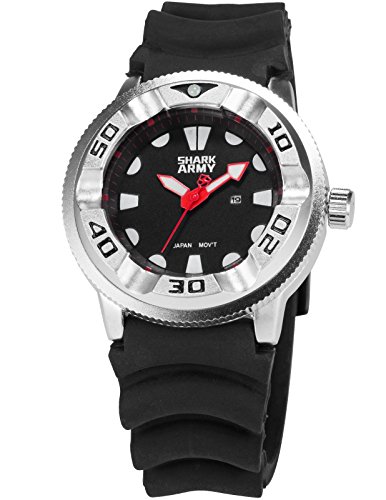 -. Title : SHARK ARMY「シャーク」SAW103 メンズ用 アナログ クォーツ 日付表示 ブラックシリコーン バンド腕時計
