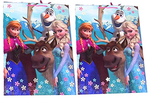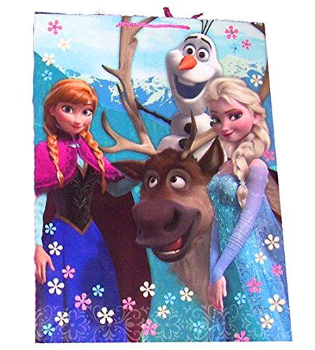 -. Binding : Toy -. Brand : Disney -. Color : Frozen -. Department : girls -. EAN : 8502117962445 -. Feature : Includes 2 disney frozen large birthday giftbags. / Each bag measures approximately: 20" tall, 14. 75" length & 8. 25" width. / Bag features anna, elsa, olaf & sven. / Coordinate with other disney frozen party supplies and decorations. -. Genre : Frozen -. IsAdultProduct : 0 -. Label : Disney CO -. Manufacturer : Disney CO -. PackageQuantity : 2 -. ProductGroup : Toy -. ProductTypeName : TOYS_AND_GAMES -. Publisher : Disney CO -. Size : 20"x14.75"x8.25" -. Studio : Disney CO -. Title : Disney Frozen Large Birthday Christmas Present Gift-bags, 2 Bags
