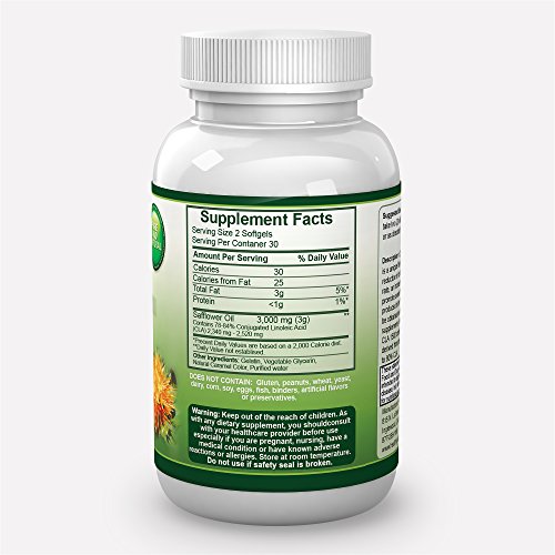 -. Title : Pure CLA 1500 Extra Strength CLA Pills From Safflower Oil ,3000 mg Per Serving, 60 Vegetarian Softgels.Helps Reduce Belly Fat And Supports Healthy Weight Loss. Made In The USA And Comes With 100% Satisfaction Money Back Guarantee.