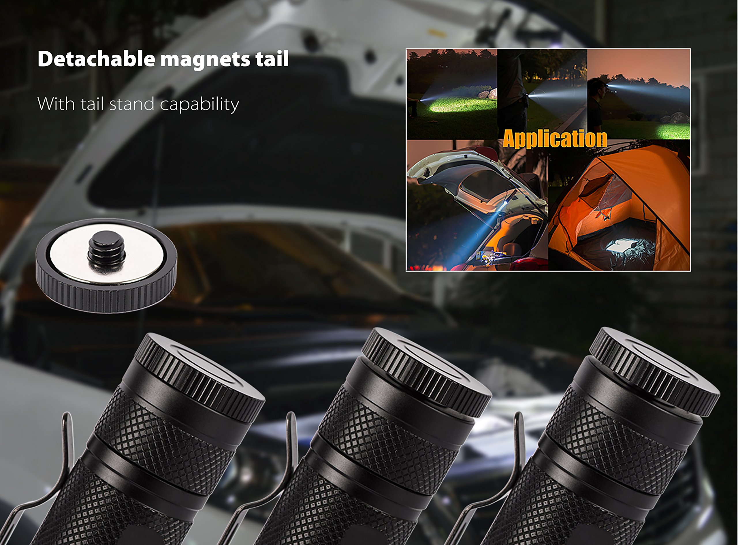 In the case that the magnetism is affected, it can be stood even if it is removed, it can be attached to a branch of a wood branch or a tent during camping with a flexible tripod etc, it can be used as a simple spotlight attached to a tripod etc.
