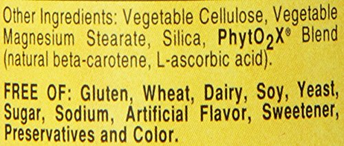 -. Feature : Suitable for Vegetarians / Standardized full potency / Free of corn, yeast, wheat, and dairy products and are formulated without the use of preservatives, artificial flavors or colors