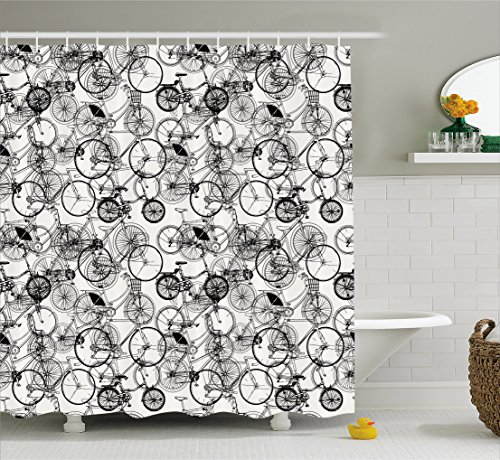 Sketchy Shower Curtain by Ambesonne, Vintage Retro Bicycle Bike Hand Drawn Vector Abstract Design Image Artwork, Fabric Bathroom Decor Set with Hooks, 70 Inches, Black and White