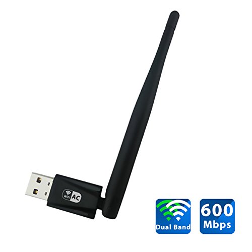 -. Feature : Dual Band Wifi Adapter; super fast sppeed up to 600Mbps, 433Mbps Wireless Speed at 5GHz or 150Mbps Speed at 2.4GHz band / Works with all WiFi Routers including 802.11a/b/g/n/ac; Compatible system with Windows 2000/XP/Vista/7/8/10, Linux, Mac OS / External Powerful Antenna: High Gain Long-Range 5dBi Antenna can help you connect even when signals are weak / Perfect for online gaming with smooth lag-free Ultra HD video / Compact and light weight, quick plug and play (after driver installed) WIFI access for your desktop, laptop