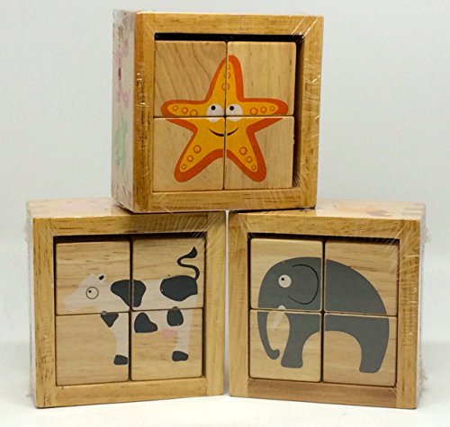 -. Feature : Three Stacking Blocks Puzzle Set. Farm, Safari, and Sea Life Animals / 6 puzzles in each Set: each side is P.R.Inted with a different animal / Perfectly Sized for Toddlers / Puzzles help build motor and problem solving skills / Made from natural Rubber wood, P.R.Inted with non-toxic inks. Each of our toys meets US, Canadian and European safety standards.