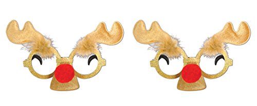 Beistle S20360AZ2 Glittered Reindeer Glasses, Tan/Red