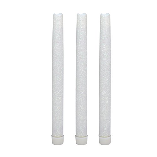 9 Inches Melted Led Taper Candles with Timer,Battery Operated,with White Glitter,Pack of 3